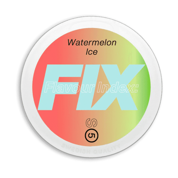 FIX Watermelon Ice #5 är ett vitt snus från FIX, tillverkat i Sverige av Habit Factory. Produkten är en tobaksfri nikotinpåse i slimformat med smak av vattenmelon kombinerat med en kylande mentoleffekt.