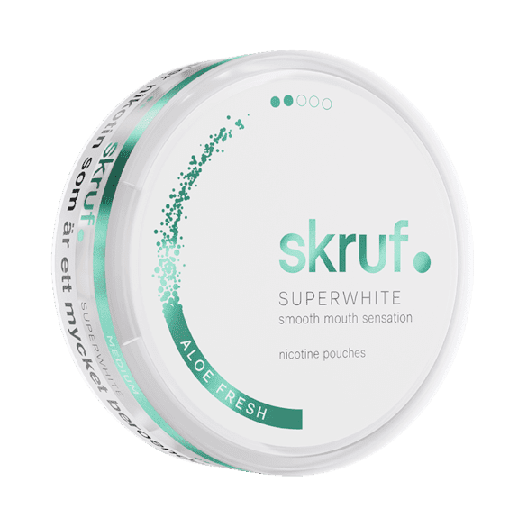 Skruf Superwhite Aloe Fresh är ett vitt snus från Skruf. Produkten är en tobaksfri nikotinpåse i slim-format med smak av aloe vera och mint.