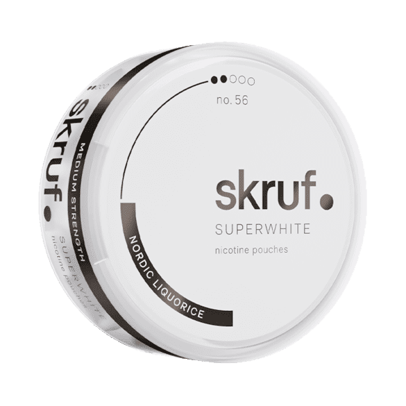 Skruf Superwhite No.56 Nordic Liquorice är ett vitt snus från Skruf. Produkten är en tobaksfri nikotinpåse i slim-format med smak av lakrits.